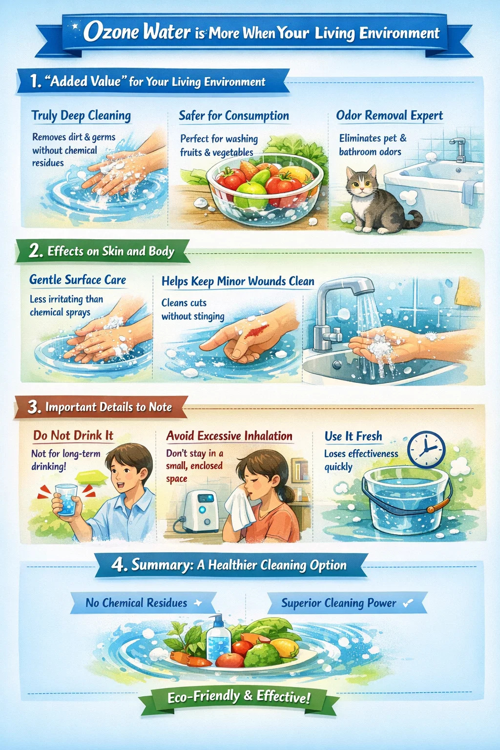Eau ozonée est très bénéfique pour l'environnement domestique et l'hygiène personnelle ; c'est comme un « assistant de nettoyage polyvalent ». Mais comme pour toutes les bonnes choses, la clé réside dans la manière dont vous l’utilisez.