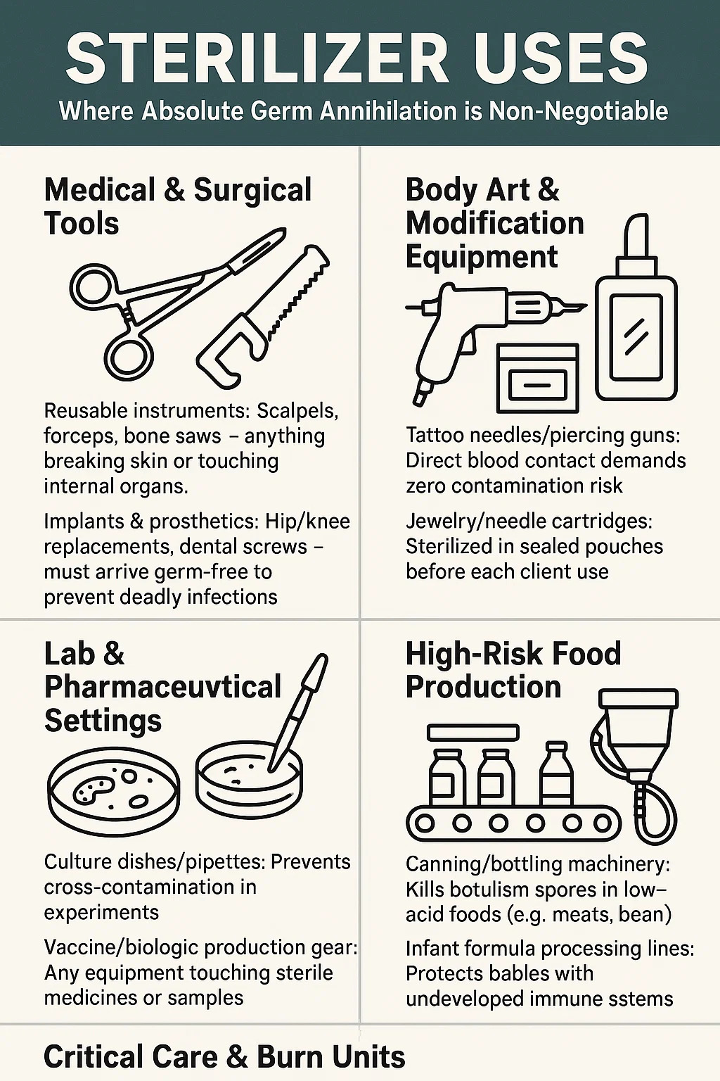 Stérilisateur Utilisations : là où l'annihilation absolue des germes n'est pas négociable